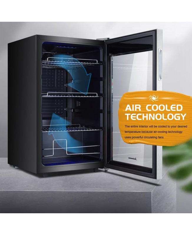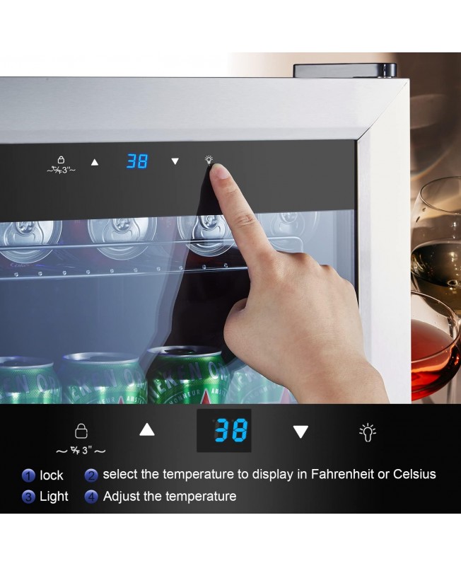 - ★LARGE CAPACITY FOR WINE & CAN: This mini wine fridge holds up to 108 cans of your favorite drink in different sizes. It's the perfect choice for you. Soft white LED lights keep your drink in a beautiful environment, help you select your favorite drink at all times.