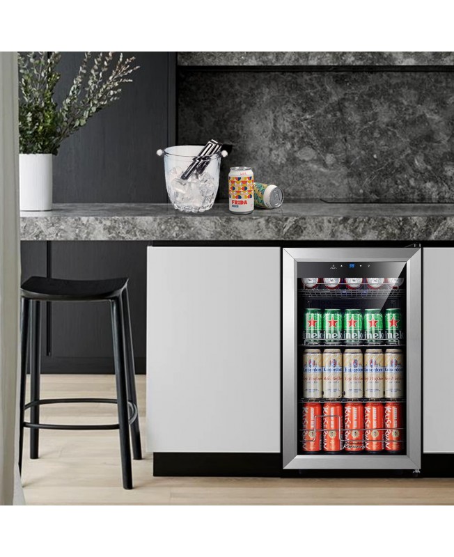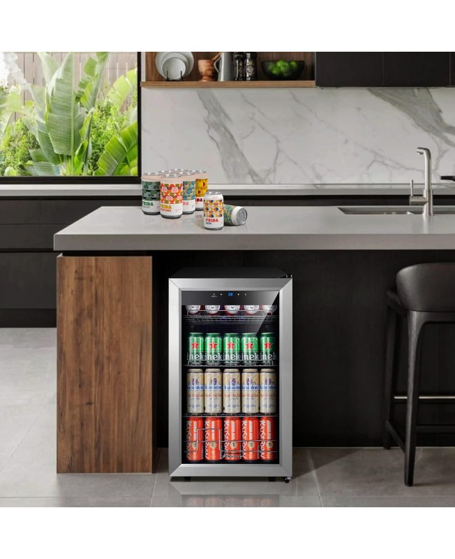 Kalamera Mini Beverage Refrigerator Freestanding- 102 Cans Capacity Beverage Cooler- for Soda, Water, Beer or Wine - For Kitchen or Bar with Whit Interior Light.
