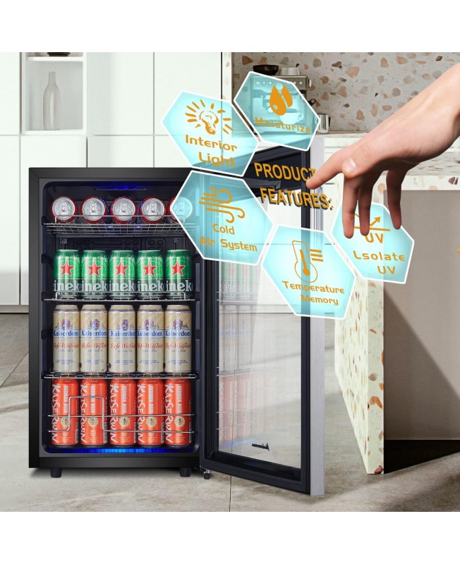 Kalamera Mini Beverage Refrigerator Freestanding- 102 Cans Capacity Beverage Cooler- for Soda, Water, Beer or Wine - For Kitchen or Bar with Whit Interior Light.